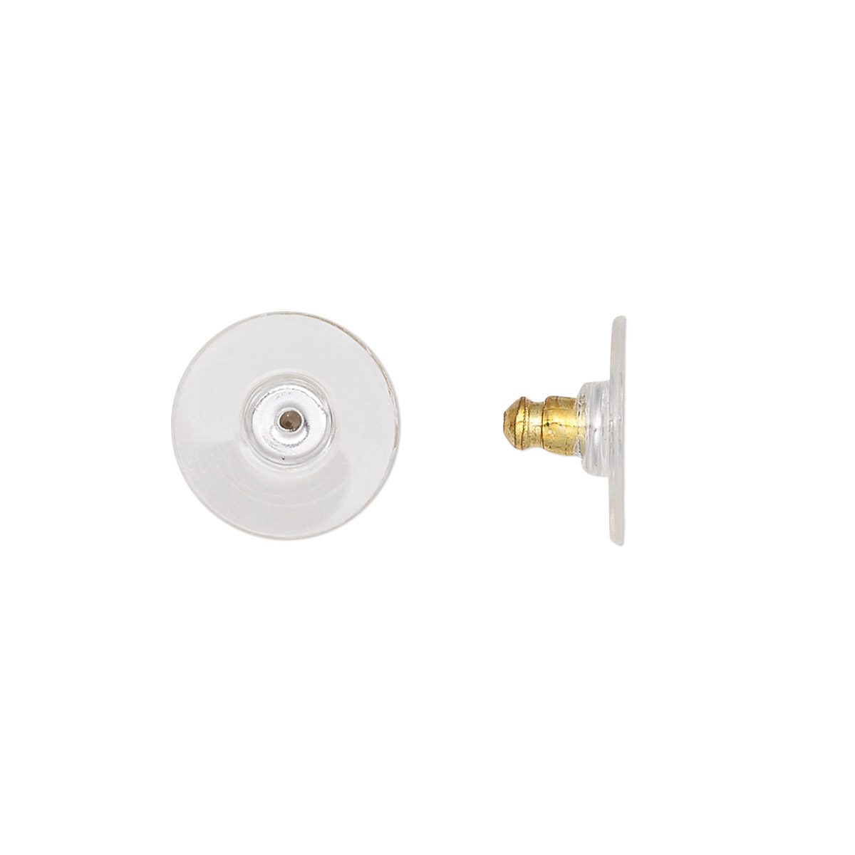 Застежки для серег-гвоздиков (пуссет) с золотистой вставкой, часть, прилегающая к уху, стального цвета. Внутри застежки имеется резиновая вставка, плотно удерживающая застежку на пусете. Хорошо подходят для крупных, тяжелых пуссет, благодаря широкому пластиковому ободку. Размер может немного отличаться от заявленного. На краю возможна небольшая неровность. Базовый материал металлической вставки - алюминий. Цена за пару.