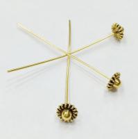 Необычные фигурные пины. Сам пин сделан из латуни, фигурная головка в форме цветка - из бижутерного цинкового сплава. Диаметр головки - около 8 мм, длина пина - 5.3 см, диаметр пина около 0,7 мм. Оттенок может отличаться от фотографии и в разных поставках. Цена за 10 шт.