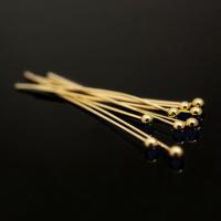 Качественная корейская фурнитура класса люкс. Пины с шариком, длина 3.3 см, толщина 0.511 мм (24GA), диаметр шарика около 2 мм. Материал - латунь, покрытие - позолота 16 карат. Головка на пине может быть расположена не точно по центру, пины могут быть изогнуты. Оттенок может отличаться от фотографии. Цена за 2 грамма (около 25 шт., фасуются без проверки на дефекты.)