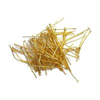Бюджетные пины со шляпкой золотистого цвета. Длина около 3 см, диаметр пина 0,723 мм, диаметр шляпки около 2 мм. Головка на пине может быть расположена не точно по центру, пины могут быть погнуты. Оттенок может отличаться от фотографии и в разных поставках. Цена за 10 грамм (около 60 шт.)