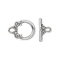 Застежка - тоггл необычной формы с витиеватым узором. Базовый материал - пьютер (металлический бижутерный сплав), покрытие - серебро 925 пробы с чернением. Цена за 5 шт.