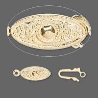 Позолоченная застежка в форме овала с узором. Тип застежки - рыболовный крючок (fishhook). Оттенок может отличаться от фотографии и в разных поставках. Цена за 2 шт.
