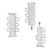 Замочек-слайдер в форме прямоугольной трубочки для трехрядного украшения или широкого плетеного браслета. Базовый материал - латунь. Покрытие - серебро 925 пробы. На покрытии возможны небольшие царапинки. Оттенок может отличаться от фотографии и в разных поставках. Цена за 1 шт.