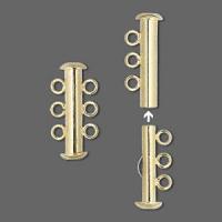 Замочек-слайдер в форме трубочки на 3 нити. Шляпка может быть немного смещена вбок возможны неровности. Базовый материал - латунь. Золотое покрытие 18 карат. Оттенок может отличаться от фотографии и в разных поставках. Цена за 1 шт.