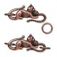 Двусторонняя S-образная застежка-крючок котенок с клубком с двумя 8.5 мм соединительными колечками. Выполнена из сплава на основе олова с медным покрытием с чернением. Оттенок может отличаться от фотографии и в разных поставках. Сделано в США. Цена за 1 шт.