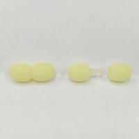 Пластиковая закручивающаяся застежка, цвет светло-желтый, непрозрачный, матовый (тёртый). Застежка состоит из двух концевиков с внутренней резьбой и соединительного штырька размером 10*3 мм с внешней резьбой. Диаметр входного отверстия у концевиков - около 1 мм.