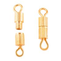 Бюджетная закручивающаяся застежка в форме цилиндра с бороздками. Материал - железо с покрытием золотого цвета. Оттенок может немного отличаться от фотографии и в разных поставках. При желании петельки можно срезать кусачками и использовать застёжку без них, как застежку-концевик. Размер цилиндра без петелек - 7*3мм. Цена за 10 шт.