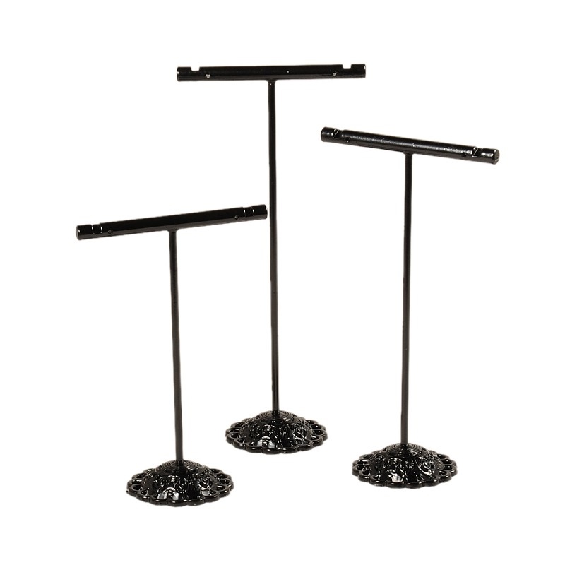 Набор из трех металлических подставок для сережек. Подходят как для обычных серег, так и для гвоздиков (пуссет) (на верхней перекладине просверлены отверстия). В наборе 3 подставки разной высоты: 9 см, 11 см и 12.5 см. Подставки разъемные (на палочке с обеих сторон имеется резьба). Отлично подходят для демонстрации серег на выставках или в магазине. Цена за 1 набор.