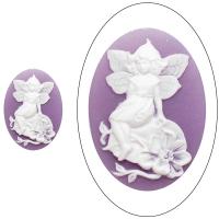 Японская акриловая камея, цвет белый на фиолетовом. На камее изображена маленькая фея, похожая на Дюймовочку. Цена за 1 шт.