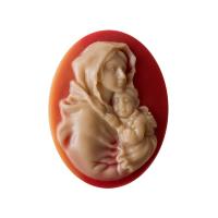 Акриловая японская камея с изображением девы Марии, держащей на руках младенца. Цвет перламутр на сердолике. Цена за 1 шт.