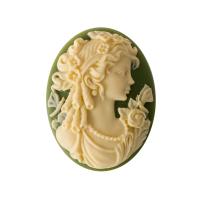 Японская акриловая камея высокого качества. Цвет слоновая кость на зеленом. Цена за 1 шт.