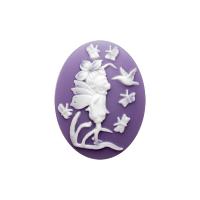 Прекрасная акриловая японская камея, цвет белый на фиолетовом. На камее изображена маленькая фея (эльф) в окружении бабочек и колибри. Цена за 1 шт.