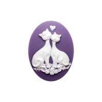 Акриловая японская камея, цвет белый на фиолетовом. На камее изображены кот и кошка. Отличное качество, очень тонкая проработка деталей. Цена за 1 шт.