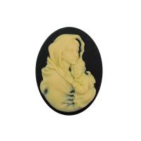 Акриловая японская камея с изображением девы Марии, держащей на руках младенца. Цвет слоновая кость на черном. Цена за 1 шт.