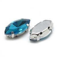 Стеклянный страз, установленный в пришивную оправу с цапами. Форма челнок (листик, глаз), размер страза 12*6 мм, оправы 11*5 мм. Цвет страза - голубой. Базовый материал оправы - латунь, покрытие темно-серебристого цвета. На стразах возможны небольшие царапинки. Цена за 5 грамм (около 14 штук, фасуются без проверки на дефекты).