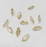 Ювелирный кристалл (шатон, Chaton) из фианита (Cubic Zirconia), форма челнок (листик, глаз). Качество А. Цвет светлый золотисто-бежевый. Оттенок и вид огранки (количество граней) у разных кристаллов может немного отличаться. На шатонах возможны незначительные царапинки/сколы. Цена за 1 шт.