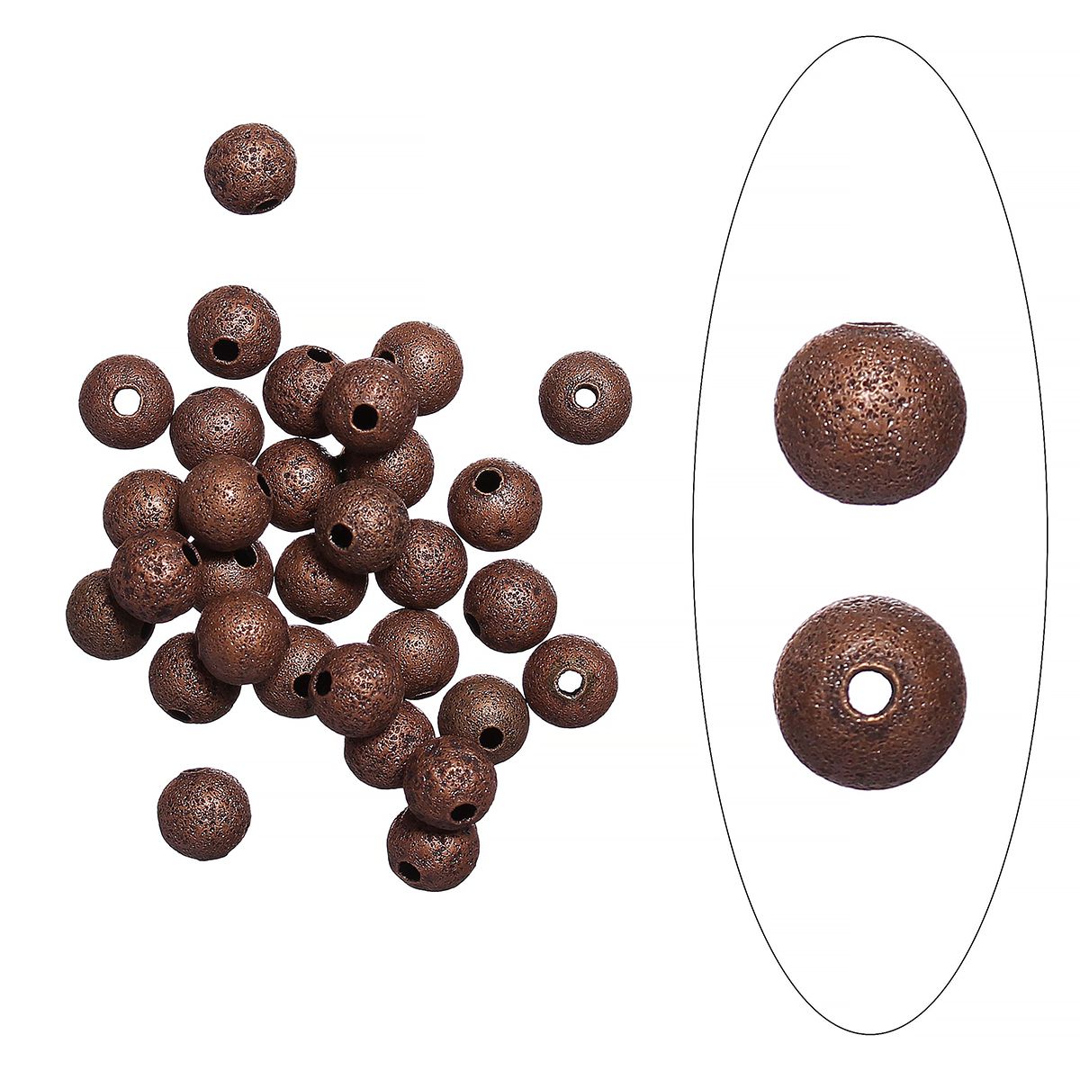 Латунная бусина с медным покрытием с чернением, выполнена в стиле "соляной техники". Цвет античная медь. Оттенок может отличаться от фотографии. Диаметр отверстия около 1 мм. Цена за упаковку 5 грамм (около 26 бусин, фасуются без проверки на дефекты).