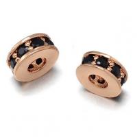 Элитная ювелирная фурнитура премиум класса - Милано люкс (Milano Lux), качественный элемент для создания бижутерии. Эффектная бусина - рондель (спейсер, шайба). Эта бусина будет отлично смотреться как разделитель между круглыми каменными бусинами. Диаметр отверстия примерно 3 мм. Бусина декорирована черными стразами - фианитами (Cubic Zirconia– кубик циркония, CZ, цирконы) в технике микроинкрустация паве. Материал - латунь, сверху покрытие светло-медного цвета. Цена за 1 штуку.