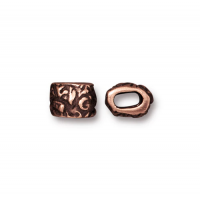 Бусина-бочонок с овальным сечением и растительным орнаментом. Отверстие - 4*2 мм. Производство Тьерра Каст (США), дизайн JARDIN. Базовый материал - бижутерный сплав на основе олова, цвет под античную медь (медное покрытие с чернением). Оттенок может отличаться от фотографии и в разных поставках. Артикул производителя: 94-5809-18. Цена за 2 шт.