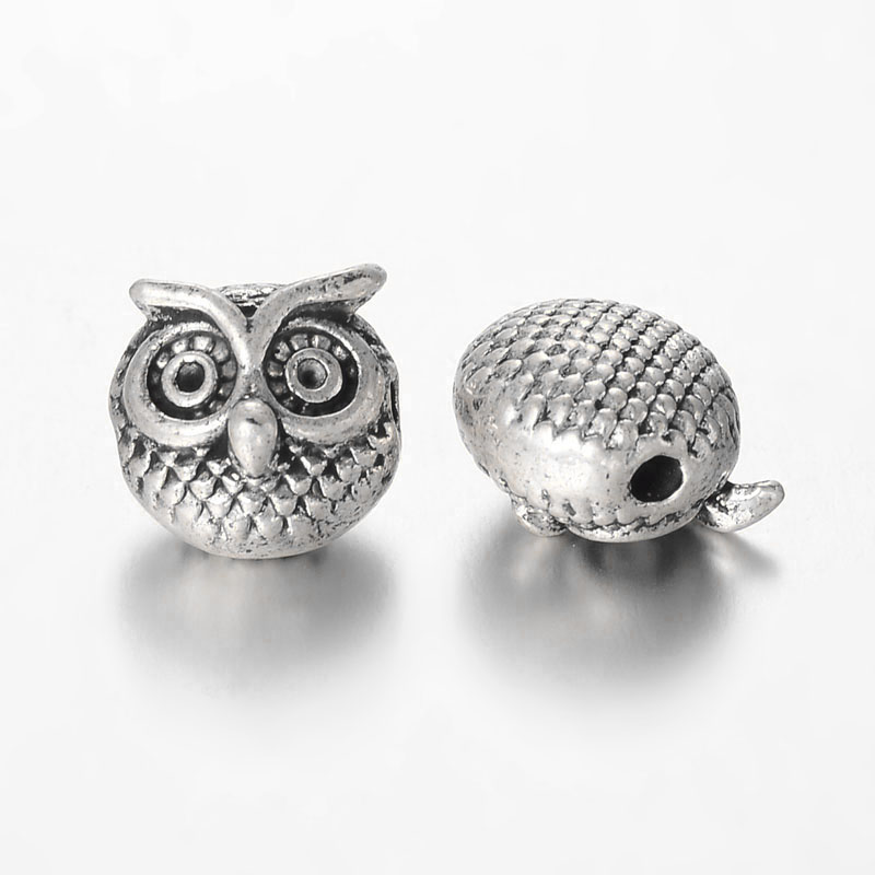 Металлическая бусина - сова (филин). Под античное серебро, оттенок и степень чернения могут отличаться от фотографии. В глаза можно вклеить ювелирные кристаллы (шатоны) диаметром 1 мм (пример на дополнительной фотографии). Отверстие в бусине горизонтальное, отлично будет смотреться на браслетах. Диаметр отверстия около 1.5 мм. Цена за 5 шт.