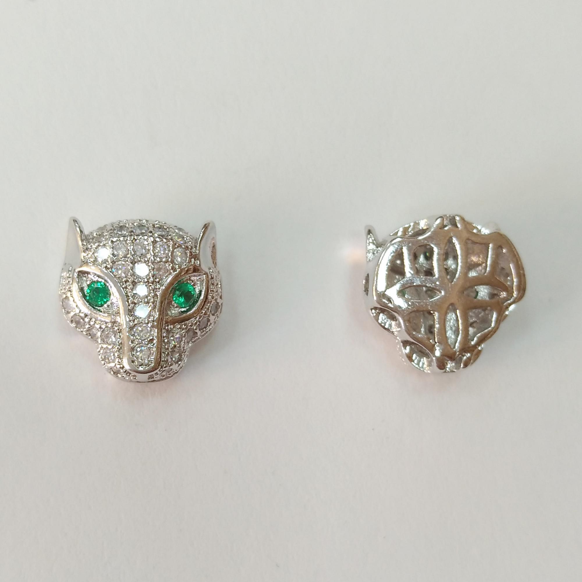 Фурнитура для бижутерии Милано класса люкс (MILANO LUX). Качественный компонент для бижутерии - эффектная односторонняя бусина голова леопарда. Размер отверстия примерно 1 мм. Инкрустация фианитами двух цветов. Оттенок может отличаться от фотографии и в разных поставках. Цена за 1 шт.