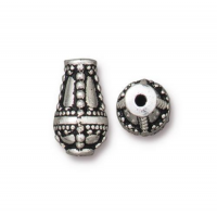 Узорная бусина - капля. Дизайн OPULENCE. Диаметр отверстия около 1 мм. Базовый материал - металлический сплав на основе олова, покрытие - гальваническое напыление серебром 999 пробы с чернением. Оттенок может отличаться от фотографии и в разных поставках. Качественная брендовая американская фурнитура компании Tierra Cast (Тьерра Каст, США). Артикул производителя: 94-5834-12. Цена за 1 шт.