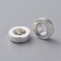Бусина-разделитель лаконичная рондель. Серебристого цвета. Оттенок может отличаться от фотографии. Диаметр отверстия с одной стороны около 2.5 мм, с другой около 2.9 мм. Отверстие может быть сделано не точно по центру. Возможны небольшие неровности. Цена за 5 грамм (около 20 бусин, фасуются на вес без проверки на дефекты).
