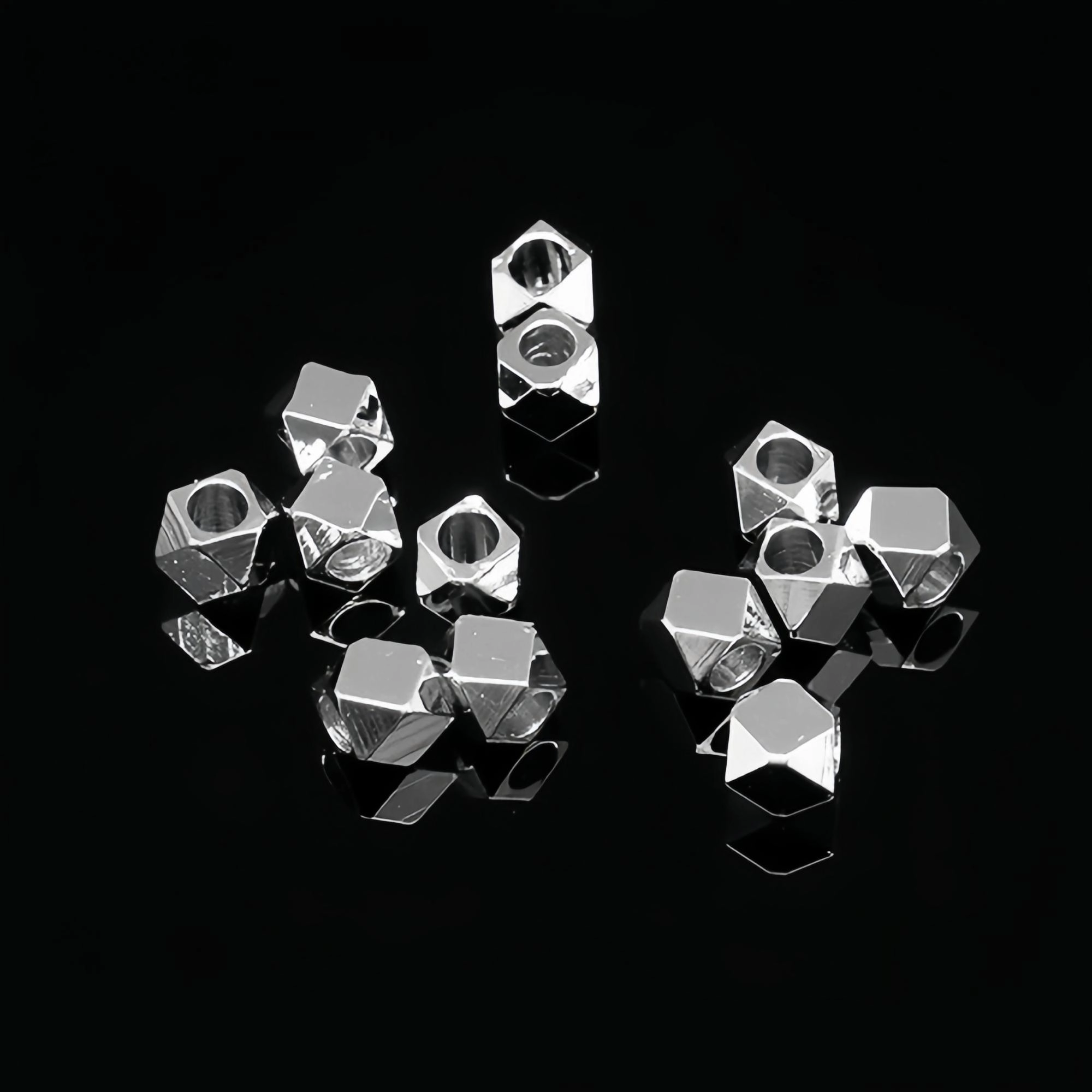 Качественная корейская родированная фурнитура класса люкс. Маленькая металлическая гранёная бусина (многогранник). Диаметр отверстия - около 1.5 мм. Материал латунь, покрытие родий. Оттенок может отличаться от фотографии и в разных поставках. На поверхности возможны небольшие неровности. Производство: Южная Корея. Цена за 10 бусин.