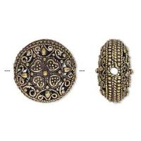 Кружевная бусина с орнаментом. Ручная работа. Филигрань. Позолоченная с чернением. Цена за 1 шт.