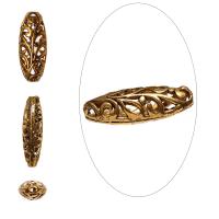 Изящная бусина с ажурным узором с завитками, напоминает растительный орнамент. Изготовлена из бижутерного сплава с покрытием под золото. Размер отверстия: 1.2 мм. Цена за 5 шт.
