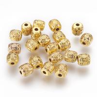 Овальная, слегка приплюснутая бусина с геометрическим узором. Изготовлены из бижутерного сплава с покрытием золотого цвета с чернением. Оттенок может отличаться от фотографии. Размер отверстия около 1.2 мм. Цена за 10 грамм (около 15 бусин, фасуются без проверки каждой бусины на дефекты).