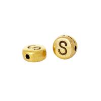 Двусторонняя металлическая бусина-буква золотого цвета (английский алфавит). Диаметр отверстия - около 0,75 мм. Бусины могут отличаться по оттенку. Цена за 15 шт.
