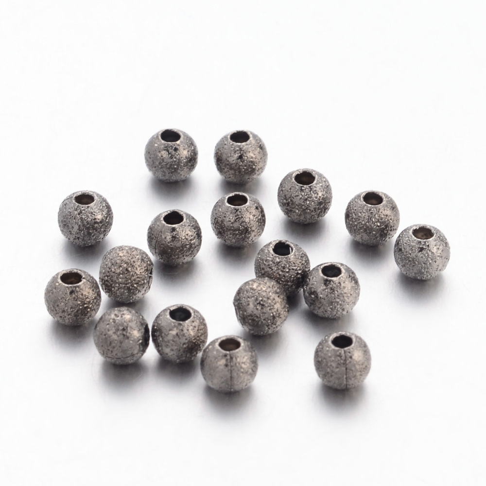 Латунная бусина с покрытием звездная пыль (stardust) цвета стали с чернением (вороненой стали). Также такие бусины называют "сахарный шарик" или "бусина с сахарным покрытием". Диаметр отверстия около 1 мм. Оттенок может отличаться от фотографии и в разных поставках. Цена за 2 грамма (около 18 штук, фасуются без проверки на дефекты).