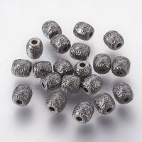 Овальная, слегка приплюснутая бусина с геометрическим узором. Изготовлены из бижутерного сплава с покрытием черного цвета (gunmetal). Оттенок может отличаться от фотографии. Размер отверстия около 1.2 мм. Цена за 10 грамм (около 15 штук, фасуются без пересчета и проверки на дефекты).