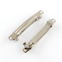 Бюджетная основа для декорирования, автоматическая заколка. Имеется два режима использования (для обычных и густых волос). Части заколки, соприкасающиеся с волосами, имеют текстурированную поверхность, благодаря чему заколка меньше скользит по волосам и лучше держится. Цвет тёмно-серебристый. Оттенок может отличаться от фотографии и в разных поставках. Длина платформы примерно 59 мм, ширина около 6.5 мм. По краям платформы имеется 2 отверстия. Декор можно приклеить или пришить. Цена за 10 штук.