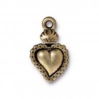 Эффектная двусторонняя металлическая подвеска - сердечко с огнём (пламенное сердце) в мексиканском стиле. Священное сердце Милагро - небольшой религиозный народный талисман Мексики и Перу, символизирует любовь, исцеление и благодарность. Брендовая фурнитура от американской компании ТьерраКаст (Tierra Cast), дизайн Milagro Heart. Базовый материал - бижутерный сплав на основе олова, сверху бронзовое покрытие с чернением. Оттенок может отличаться от фотографии и в разных поставках. Артикул производителя: 94-2322-27. Цена за 1 шт.