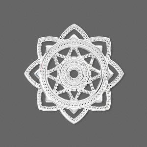 Посеребренный декоративный элемент в форме стилизованного солнца (звезды) с резным узором. Отверстие в центре - 2.4 мм. Сделан из латуни с покрытием серебро 925 пробы. Цена за 1 шт.
