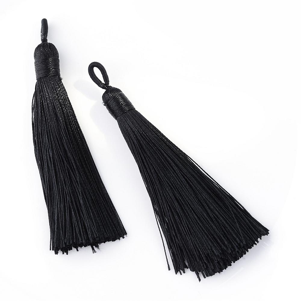 Изящная струящаяся кисточка с петелькой из синтетической нити (полиэестер). Используется для создания бижутерии: сережек, кулонов (сотуаров), четок, подвесок на сумки и брелоки, других украшений. Ширина кисточки - около 9 мм, длина кисточки - около 7.5 см без петельки, длина петельки - около 0.8 см. Размер может немного отличаться от заявленного. Кисть черного цвета. Оттенок может немного отличаться от представленного на фотографии. На петельках возможны небольшие дефекты - торчащие нитки и т.п. Цена за 2 шт.