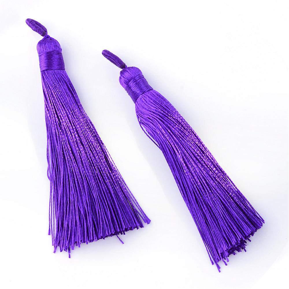 Изящная кисточка с петелькой из синтетической нити (полиэестер). Используется для создания бижутерии: сережек, кулонов (сотуаров), четок, подвесок на сумки и брелоки, других украшений. Ширина кисточки - около 9 мм, длина кисточки - около 7.5 см без петельки, длина петельки - около 0.8 см. Кисть ярко-фиолетового цвета. Петелька может отличаться по цвету от кисточки. Оттенок может немного отличаться от представленного на фотографии. Цена за 2 шт.