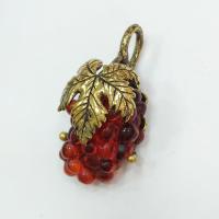 Подвеска - виноградная гроздь. Металлическая часть сделана из бижутерного сплава с покрытием золотистого цвета с чернением. Вставка (виноград) выполнена из прессованного янтаря. Листик может располагаться как по центру грозди, так и со смещением. Оттенок может отличаться от фотографии. По краю возможны небольшие сколы. Цена за 1 шт.