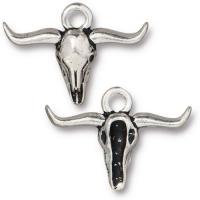 Эффектная трёхмерная металлическая подвеска – череп буйвола (быка). Производство Тьерра Каст (США), дизайн Longhorn (буйволиный череп с длинными рогами). Базовый материал - металлический сплав на основе олова, покрытие - гальваническое напыление серебром 999 пробы с чернением. Оттенок может отличаться от фотографии и в разных поставках. Артикул производителя: 94-2576-12. Цена за 1 шт.