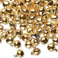 Маленький бубенчик из стали, золотистого цвета. На покрытии возможны темные пятнышки, не все бубенчики звенят, оттенок бусин может быть различным. Длина с петелькой 8 мм, ширина 6 мм. Фасуются без проверки на брак. Цена за упаковку из 20 шт.