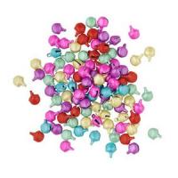 Маленькие бубенчики из стали, покрашены в разные цвета (розовые, красные, фиолетовые, зеленые, синие, желтые и др.) Могут отличаться от представленных на фото. Длина с петелькой 8 мм, ширина 6 мм. Цена за упаковку из 20 шт.