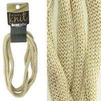 Металлизированная ювелирная сетка (металлизированная лента, трикотажная ювелирная сетка) Metallic Knit от американской компании BeadSmith, плоская, но края скручиваются к центру. Ширина полотна около 4 см. Цвет светлое золото (gold), оттенок может отличаться от фотографии. Цена за отрезок около 1.25-1.35 метра (около 5 футов в натянутом состоянии). Произведена американской компанией Bead Smith в Китае.