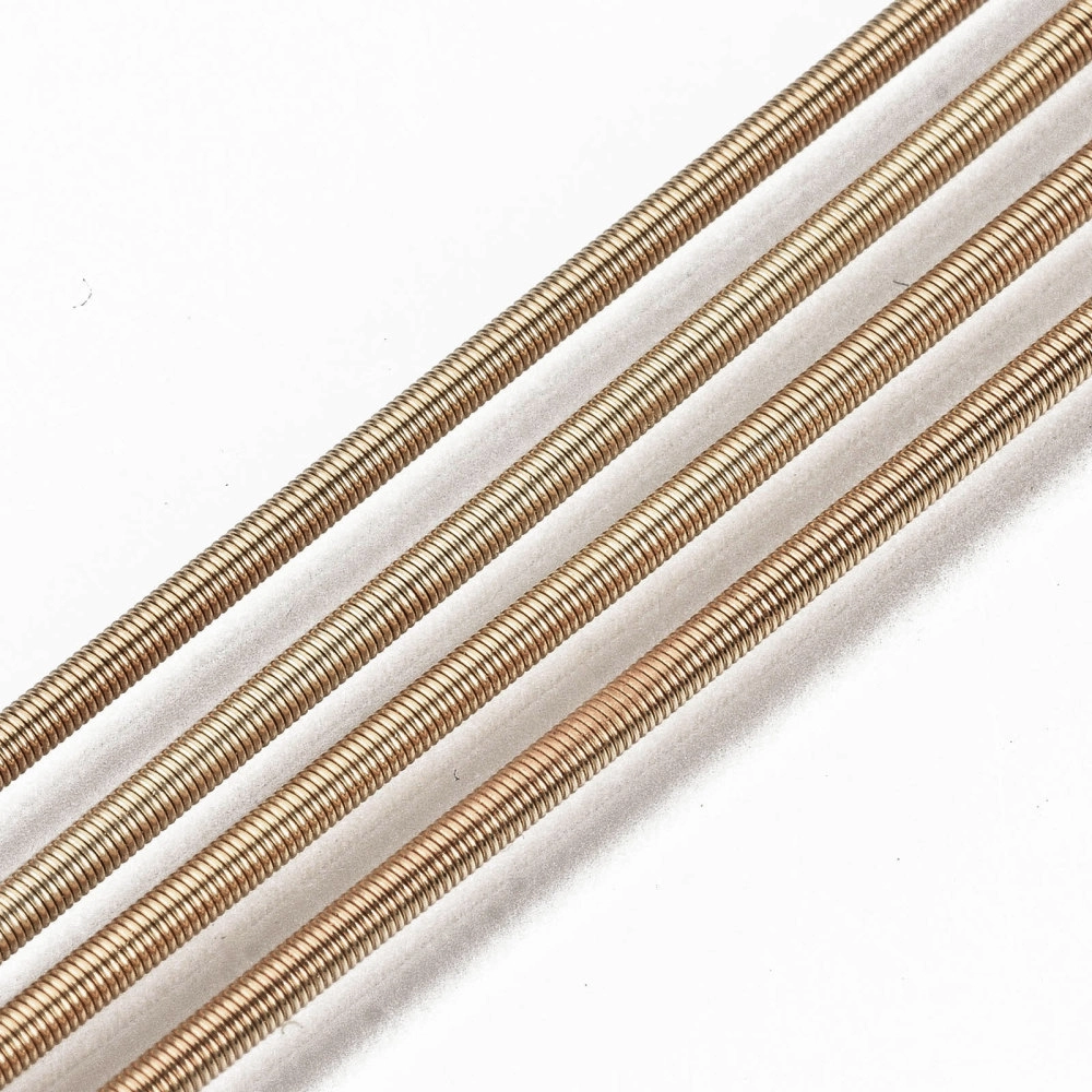 Гладкая золотистая проволока-пружинка типа бульонка - канитель. Тип: жёсткая. Базовый материал - сталь. Толщина, заявленная производителем - 2 мм, может немного отличаться в разных поставках. Длина около 95-99 см (канитель нарезана производителем). На проволоке могут периодически встречаться заломы/растянутые участки. Цвет приглушённое золото, оттенок может отличаться от фотографии и в разных поставках. Цена за 1 кусочек (95 см).