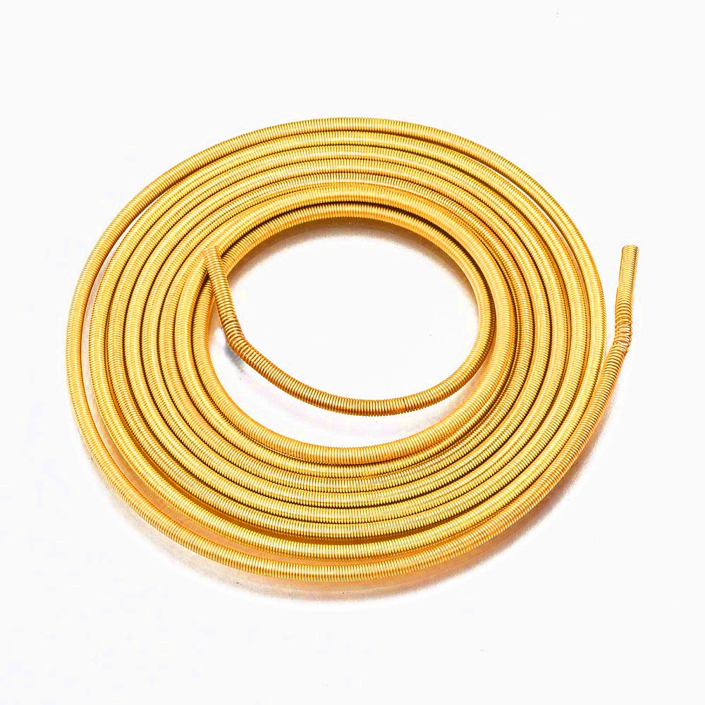 Гладкая проволока-пружинка типа бульонка с покрытием под приглушённое золото. Цвет яркое золото, оттенок может отличаться от фотографии и в разных поставках. Базовый материал - сталь. Жесткость, заявленная производителем: жёсткая. Пожалуйста, обратите внимание, что жесткость указана производителем и может отличатся от шкалы жесткости у других производителей. Толщина, заявленная производителем - 2 мм, может немного отличаться в разных поставках. Длина около 95-99 см (канитель уже нарезана производителем). На проволоке могут периодически встречаться заломы/растянутые участки, тёмные пятнышки. Также такую проволоку называют канитель или французская проволока. Канитель может использоваться как для вышивки (золотое/золотное шитье), так и для защиты нитей при сборке бус, колье, браслетов. Цена за 1 кусочек (95 см).