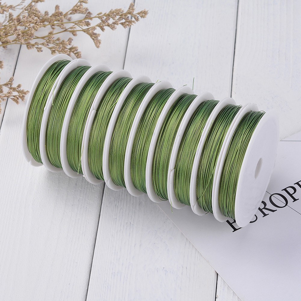 Бюджетный ювелирный тросик (ланка). Цвет оливково-зеленый. Цена за катушку 50 метров. Толщина может отличаться от указанной на плюс-минус 0,05 мм. Тросик на катушке может состоять из нескольких кусков.