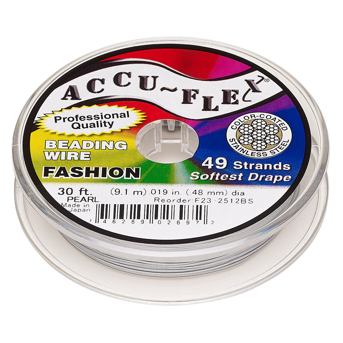 Профессиональный ювелирный тросик Accu-Flex с нейлоновым покрытием. 49-жильный тросик премиум-класса. Цвет светло-серебристый, матовый, жемчужный. Цена за катушку 30 футов (9.1 метра).