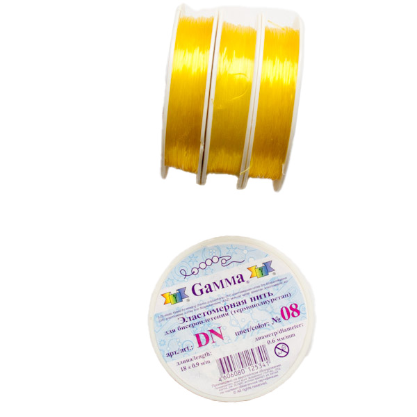 Эластичная нить (резинка) для браслетов (спандекс) лимонно-желтого цвета, фирма Гамма. Цена указана за катушку (18±0,9 метра).