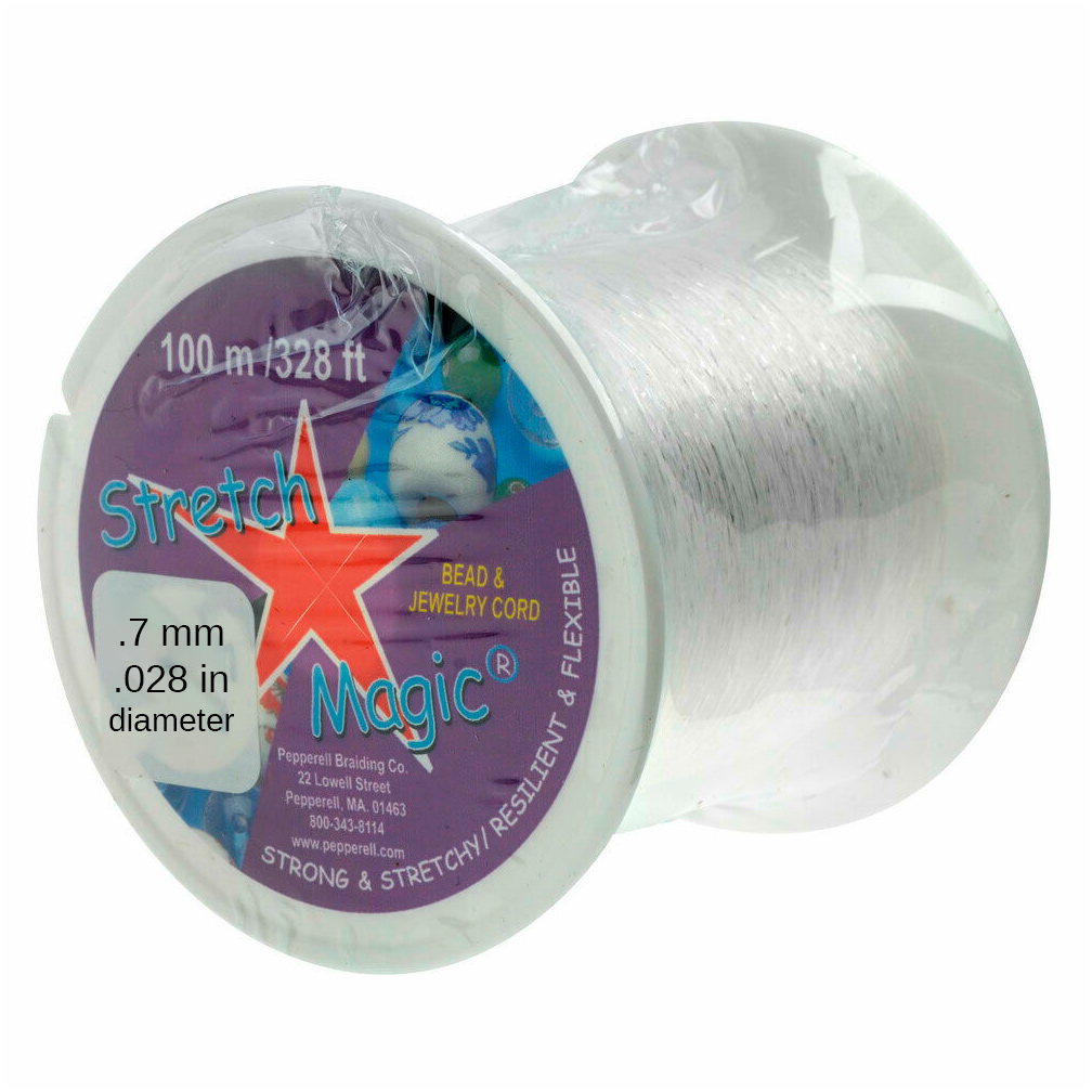 Качественная эластичная нить (резинка) для браслетов (спандекс) бело-прозрачного цвета из силикона. Экономичная стометровая намотка. Цена указана за катушку (около 100 метров). Произведена американской компанией Pepperell Braiding Company в США.